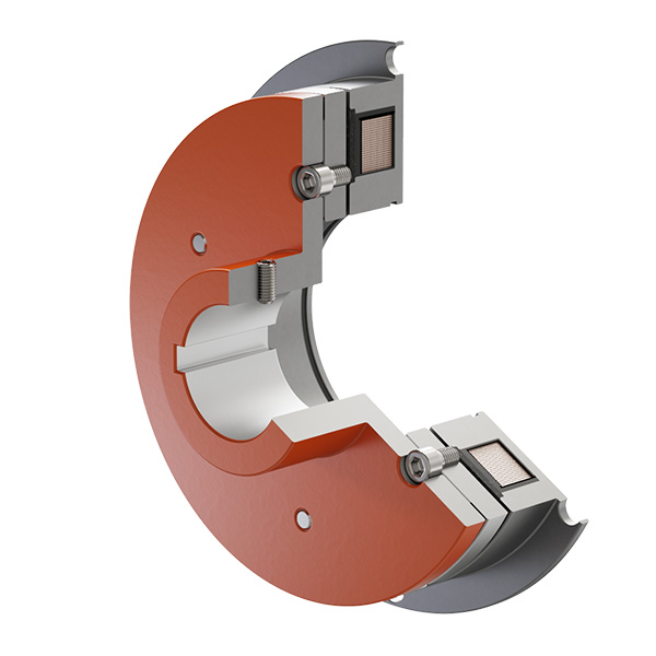 I dispositivi DRK sono frizioni che quando si applica tensione la bobina agisce da elettromagnete e attira l’armatura con il mozzo di collegamento all’albero indotto. Così albero in ingresso e albero in uscita ruotano solidali. Togliendo tensione, l’armatura con il mozzo viene spinta dalla molla lamellare alla posizione iniziale rendendo indipendente il moto dei due alberi.